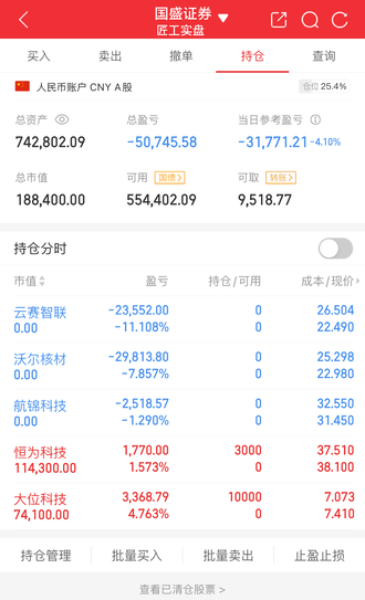 今日记录全部割肉,买入恒为科技,大位科技